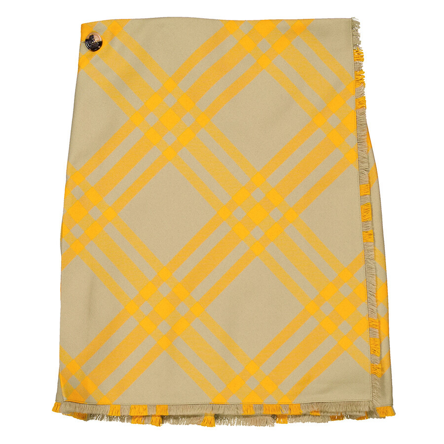 Burberry Ladies Bottoms. Fashion category: Skirts. SKU: 8077203. Material: Leather;Polyester;Wool. Color: Hunter Ip Check. Burberry Check-Pattern Frayed Skirt. This skirt features a plaid check pattern, side buckle fastening, a straight leg, a wraparound style, a frayed hem, and an above-knee length. 67% Polyester, 33% Wool, Trims: Leather 100%. Made in Italy. GENERAL Brand Type: Designer Color: Hunter Ip Check INFORMATION Brand: Burberry Gender: Womens Model: 8077203 DETAILS Category: Bottoms Apparel Type: Skirts ADDITIONAL INFO Jomashop Sku: -8077203N Department: Clothing