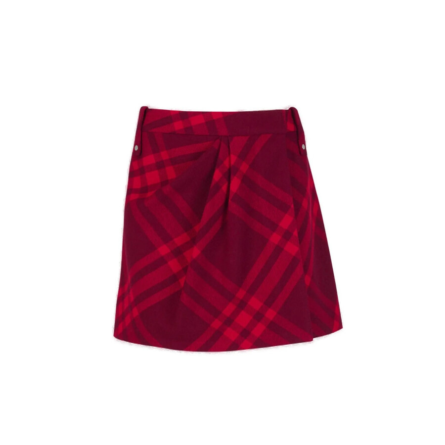 Burberry Ladies Bottoms. Fashion category: Skirts. SKU: 8077814. Color: Ripple Ip Check. Burberry Check Pleated Wool Mini Skirt. This thigh-length wool skirt features a check pattern, belt loops, and a straight hem, secured with a button and hook closure. Material: 100% wool Buttons: buffalo horn. GENERAL Color: Ripple Ip Check INFORMATION Brand: Burberry Gender: Womens Model: 8077814 DETAILS Category: Bottoms Apparel Type: Skirts ADDITIONAL INFO Jomashop Sku: -8077814N Department: Clothing