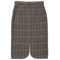 Burberry Ladies Bottoms. Fashion category: Skirts. SKU: 4566215. Color: Deep Taupe Check. Burberry Check Wool Scalloped Hem Pencil Skirt. Burberry's pencil skirt in Italian-woven check wool, lined with smooth silk. The design is styled with front and back splits for added movement. 100% Wool. Made in Italy. GENERAL Color: Deep Taupe Check INFORMATION Brand: Burberry Gender: Womens Model: 4566215 DETAILS Category: Bottoms Apparel Type: Skirts ADDITIONAL INFO Jomashop Sku: -4566215N Department: Apparel