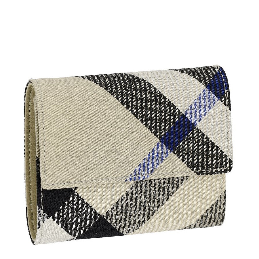 Burberry Ladies Wallets. SKU: 8086005. Barcode: 5045705630553. Color: Lichen. Burberry Checked Leather Wallet. Crafted from lambskin, this wallet features a Vintage Check pattern, a bi-fold design, and a foldover top with press-stud fastening. It includes internal card slots, note compartments, a coin pocket, and an internal logo stamp. Polyester 65%, Cotton 35% GENERAL Color: Lichen INFORMATION Brand: Burberry Gender: Womens Model: 8086005 DETAILS Material: Cotton, Polyester Closure: Snap ADDITIONAL INFO UPC Code: 5045705630553 Jomashop Sku: Z-MDE2Y Department: Bags Category: Wallets
