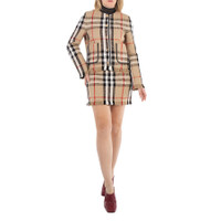 Burberry Ladies Bottoms. Fashion category: Skirts. SKU: 8072325. Color: Archive Beige Ip Check. Burberry Checked Mini Skirt. The skirt is thigh-length with an A-line silhouette, constructed with boucle fabric and finished with frayed edges, all produced in Italy. Cotton 87%, Wool 8%, Polyamide 5%. Made in Italy. ADDITIONAL INFO Department: Apparel Jomashop Sku: -8072325N DETAILS Apparel Type: Skirts Category: Bottoms INFORMATION Gender: Womens Brand: Burberry Model: 8072325 GENERAL Color: Archive Beige Ip Check
