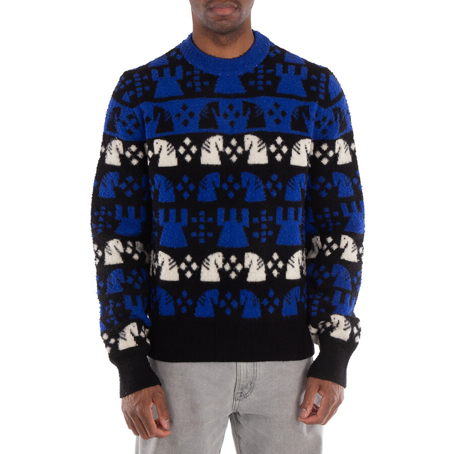 Burberry Men's Tops. Fashion category: Cardigans & Sweaters. SKU: 8076892. Color: Knight Ip Pattern. Burberry Chess Intarsia Wool-Blend Jumper. A wool-blend jumper featuring a knitted construction with a patterned intarsia design. It is designed with a classic crew neck, long sleeves, and a straight hem for a timeless and cozy look. Wool 96%, Polyester 4%. Made in Italy. GENERAL Brand Type: Designer Color: Knight Ip Pattern INFORMATION Brand: Burberry Gender: Mens Model: 8076892 DETAILS Category: Tops Apparel Type: Cardigans & Sweaters Material: Polyester, Wool ADDITIONAL INFO Jomashop Sku: -8076892N Department: Clothing