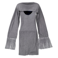 Burberry Cloud Grey Merino Wool Sleeveless Dress With Fringed Capelet