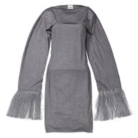 Burberry Ladies Dresses. SKU: 4564011. Color: Cloud Grey. Burberry Cloud Grey Merino Wool Sleeveless Dress With Fringed Capelet. It's crafted in Italy from merino wool to a fitted silhouette framed by wide, buttoned cuffs. The draped neckline of this dress is connected to open sleeves trimmed with fringing. Made in Italy. GENERAL Color: Cloud Grey INFORMATION Brand: Burberry Gender: Womens Model: 4564011 DETAILS Category: Dresses Apparel Type: Cocktail & Party Dresses Material: Wool ADDITIONAL INFO Jomashop Sku: -4564011N Department: Apparel