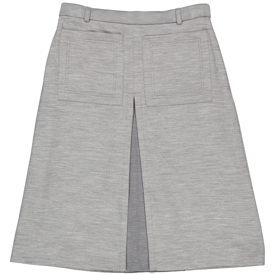 Burberry Cloud Grey Technical Wool Jersey Box-pleat Detail A-line Skirt
