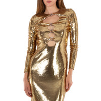 Chain-link Detail Cut-out Sequinned Silk Dress