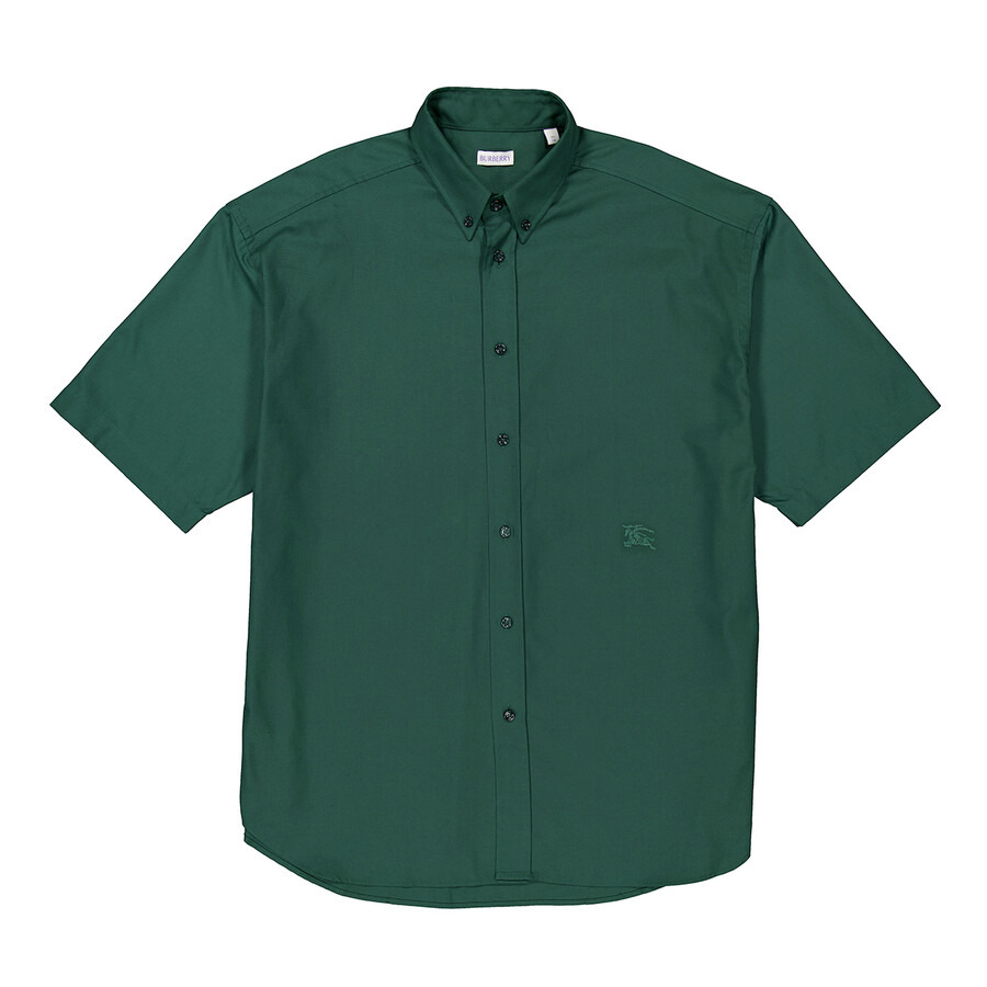 Burberry Men's Tops. Fashion category: T-Shirts & Henleys. SKU: 8082901. Burberry Cotton Oxford EKD-Logo Embroidered Shirt.The shirt is designed with tonal stitching, showcasing the signature Equestrian Knight motif embroidered at the chest, a button-down collar, front button fastening, drop shoulders, short sleeves, and a curved hem. 100% cotton. Made in Italy. GENERAL Brand Type: Designer Color: Ivy INFORMATION Brand: Burberry Gender: Mens Model: 8082901 DETAILS Category: Tops Apparel Type: T-Shirts & Henleys Material: Cotton ADDITIONAL INFO Jomashop Sku: -8082901N Department: Clothing