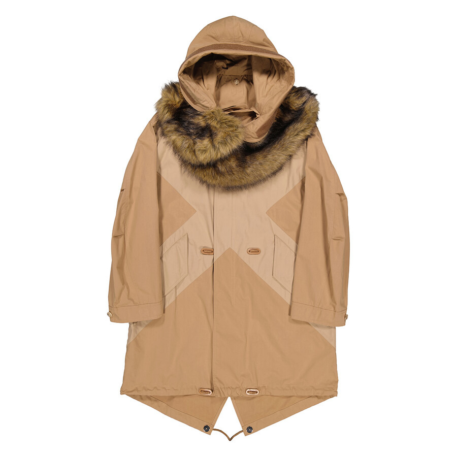 Burberry Men's Outerwear. Fashion category: Coats & Jackets. SKU: 4558921. Color: Warm Walnut. Burberry Cotton-twill Blend Parka Coat With Detachable Hood. This two-tone parka coat from Burberry is crafted in a cotton-twill blend and features a concealed zip and press-stud closure, long sleeves, flap pockets, drawcord waist, fishtail hem, a detachable hood and faux-fur wrap detail. Materials - Outer: 74% cotton, 26% polyamide. Made in Italy. GENERAL Color: Warm Walnut INFORMATION Brand: Burberry Gender: Mens Model: 4558921 DETAILS Category: Outerwear Apparel Type: Coats & Jackets ADDITIONAL INFO Jomashop Sku: -4558921N Department: Apparel