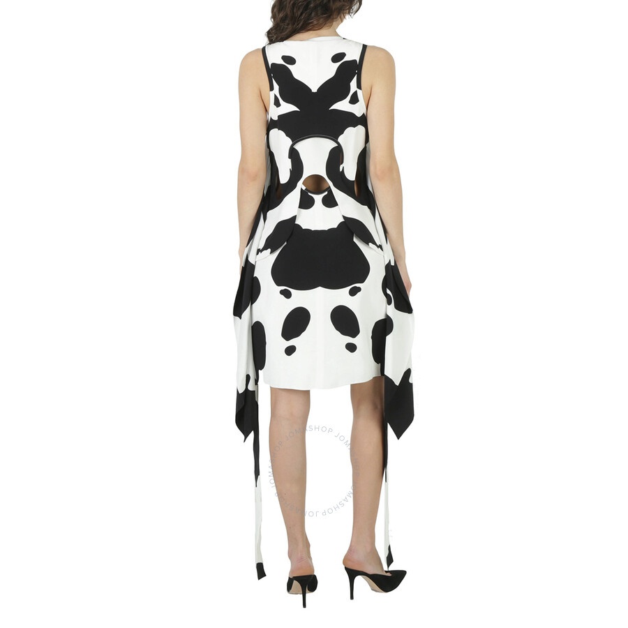 Burberry Ladies Dresses. SKU: 8054413. Color: Monochrome Ip Pttn. Burberry Cow-Print Pieced Cutout Silk Mini Dress. This silk dress is patterned with a cow print and features paneling, cutouts, and draped straps, a scoop neckline, a sleeveless design, A-line silhouette and mid-thigh length. Made in Italy. GENERAL Color: Monochrome Ip Pttn INFORMATION Brand: Burberry Gender: Womens Model: 8054413 DETAILS Category: Dresses Apparel Type: Casual Dresses ADDITIONAL INFO Jomashop Sku: -8054413N Department: Apparel