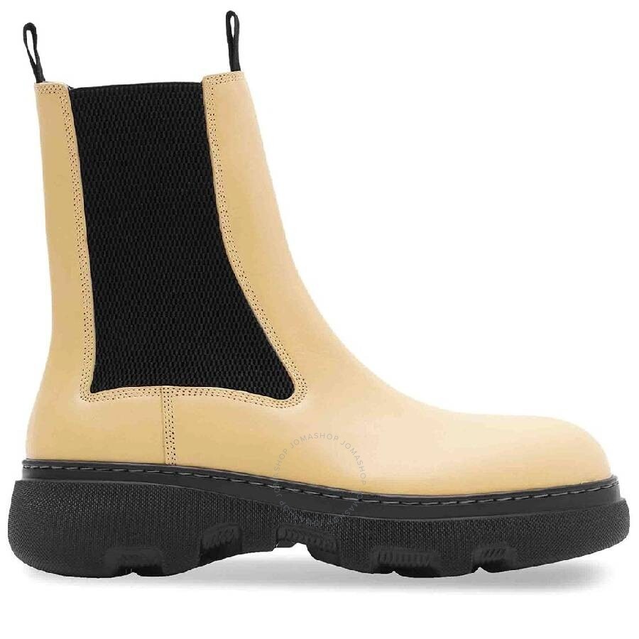 Burberry Ladies Boots. SKU: 8082898. Color: Custard. Burberry Creeper Leather Chelsea Boots. These leather Chelsea boots feature a slip-on style with double pull-tabs at the opening, elasticated side panels, a round toe, and a chunky rubber sole. The Italian-made design includes calf leather construction, pull tabs, and signature check panels. The boots also feature chunky rubber soles molded with archive logo lettering. Leather 100% Made in Italy. Please visit the brand website for sizing information. GENERAL Brand Type: Designer INFORMATION Brand: Burberry Model: 8082898 Gender: Womens DETAILS Category: Boots Shoe Style: Chelsea boot Shoe Style: Chelsea boot Color: Custard Shoe Vamp Style: Slip-on Upper Material: Leather Lining Material: Leather Sole Material: Rubber ADDITIONAL INFO Jomashop Sku: -8082898N Department: Shoes