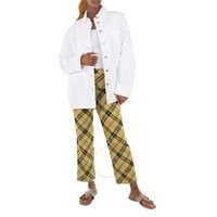 Burberry Ladies Bottoms. Fashion category: Pants & Leggings. SKU: 8037320. Color: Marigold Yellow Chk. Burberry Cropped Check Technical Wool Tailored Trousers. Tailored trousers in Italian-woven check wool, featuring a concealed hook-and-bar, button and zip fly closure, side slip pockets, back button-through welt pockets. Outer: 100% Wool. Made in Italy. GENERAL Color: Marigold Yellow Chk INFORMATION Brand: Burberry Gender: Womens Model: 8037320 DETAILS Category: Bottoms Apparel Type: Pants & Leggings ADDITIONAL INFO Jomashop Sku: -8037320N Department: Clothing