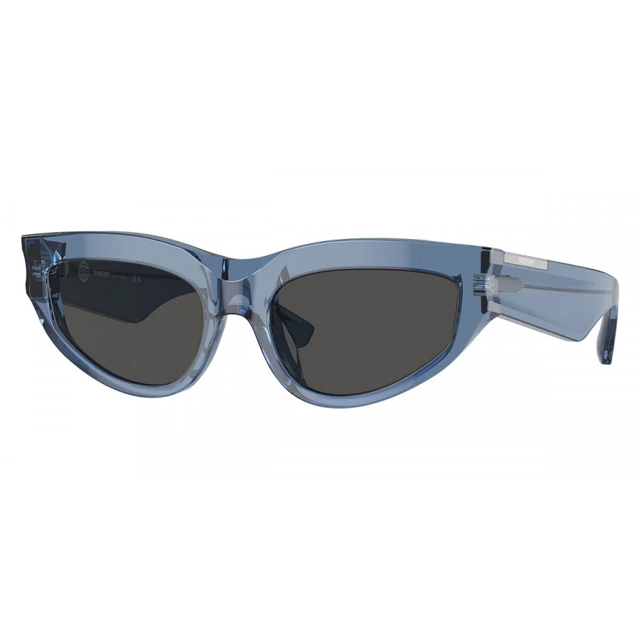 Burberry Sunglasses. Series number: BE4425U. Color code: 411787. Shape: Cat Eye. Lens Width: 55 mm. Lens Bridge: 19 mm. Arm Length: 145 mm. 100% UV protection. Non-Polarized. Frame Material: Acetate. Frame Color: Blue. Lenses Type: Dark Grey. Rim Style: Full-Rim. UPC/EAN code: 8056262081600. Burberry Dark Grey Cat Eye Ladies Sunglasses BE4425U 411787 55. Manufacturer's Packaging Included. Packaging Size And Color May Vary. DETAILS Lens Width (mm): 55 Arm Length (mm): 145 mm Lens Bridge (mm): 19 Series Number: BE4425U Frame Color: Blue Color Code: 411787 Lens: Dark Grey UV Protection: 100% UV Protection Rim Style: Full-Rim Frame Shape: Cat Eye Frame Material: Acetate GENERAL Size: 55 mm Brand Type: Designer Collection Name: BE4425U INFORMATION Brand: Burberry Gender: Womens Model: BE4425U 411787 55 ADDITIONAL INFO UPC Code: 8056262081600 Jomashop Sku: Z-SS3PX Department: Sunglasses
