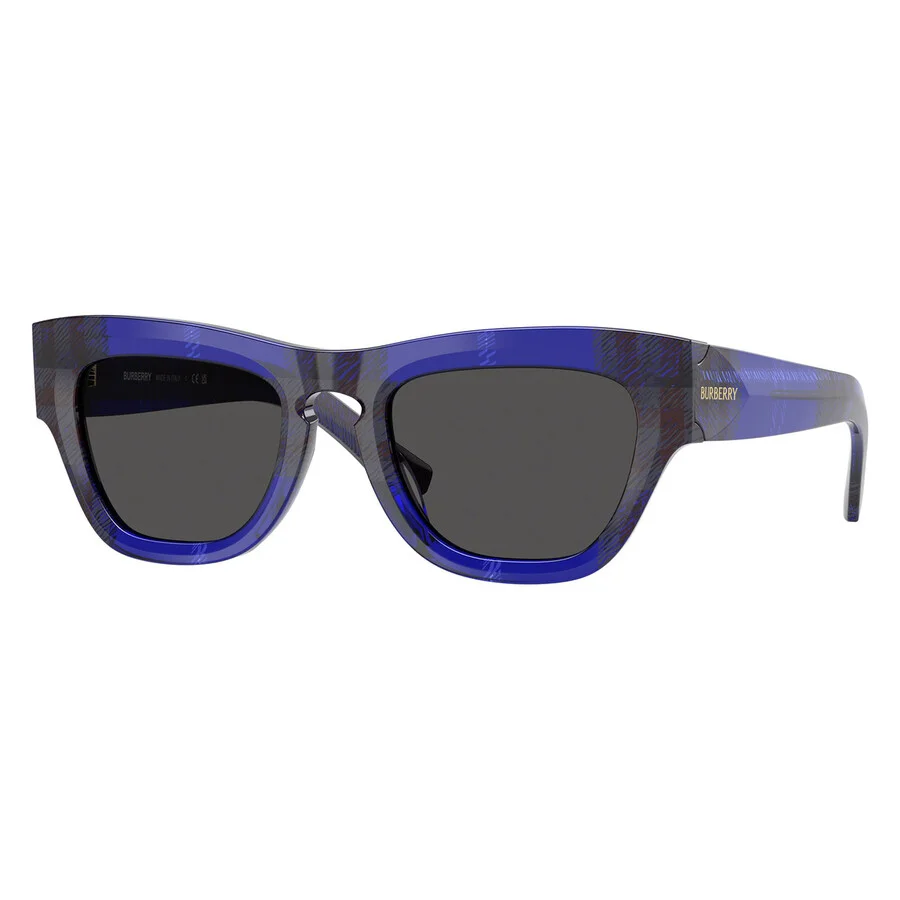 Burberry Sunglasses. Series number: BE4440U. Color code: 411487. Shape: Cat Eye. Lens Width: 51 mm. Lens Bridge: 21 mm. Arm Length: 140 mm. 100% UV protection. Non-Polarized. Frame Material: Acetate. Frame Color: Check Blue. Lenses Type: Dark Grey. Rim Style: Full-Rim. UPC/EAN code: 8056262220283. Burberry Dark Grey Cat Eye Ladies Sunglasses BE4440U 411487 51. Manufacturer's Packaging Included. Packaging Size And Color May Vary. DETAILS Lens Width (mm): 51 Arm Length (mm): 140 mm Lens Bridge (mm): 21 Series Number: BE4440U Frame Color: Check Blue Color Code: 411487 Lens: Dark Grey UV Protection: 100% UV Protection Rim Style: Full-Rim Frame Shape: Cat Eye Frame Material: Acetate GENERAL Size: 51 mm Brand Type: Designer Collection Name: BE4440U INFORMATION Brand: Burberry Gender: Womens Model: BE4440U 411487 51 ADDITIONAL INFO UPC Code: 8056262220283 Jomashop Sku: Z-LX86L Department: Sunglasses