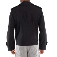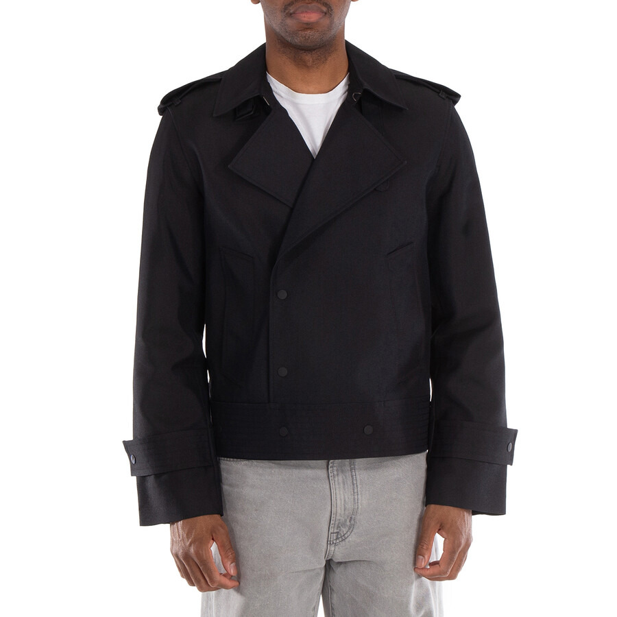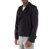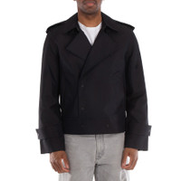 Burberry Men's Outerwear. Fashion category: Coats & Jackets. SKU: 8087329. Material: Polyester;Silk;Viscose. Color: Black. Burberry Double-Breasted Long Sleeved Jacket. This silk-blend jacket features a falling lapel, shoulder boards, double-breasted button closure, two side flap pockets, long sleeves with button cuffs, a straight hem, and a cropped design. Outer material: 60% Silk, 40% Polyester, Lining: 100% Viscose. Made in Italy. GENERAL Color: Black INFORMATION Brand: Burberry Gender: Mens Model: 8087329 DETAILS Category: Outerwear Apparel Type: Coats & Jackets Material: Polyester, Silk, Viscose ADDITIONAL INFO Jomashop Sku: -8087329N Department: Clothing