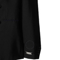 Burberry Men's Outerwear. Fashion category: Coats & Jackets. SKU: 8086776. Color: Black. Burberry Double-Breasted Wool-Blend Blazer. This wool-silk blend blazer features contrast stitching, peak lapels, and a double-breasted button fastening. It has long sleeves with buttoned cuffs, a chest welt pocket, and two side welt pockets, all finished with a sleek logo plaque for a refined touch. Wool 60%, Silk 40%. Made in Italy. GENERAL Brand Type: Designer Color: Black INFORMATION Brand: Burberry Gender: Mens Model: 8086776 DETAILS Category: Outerwear Apparel Type: Coats & Jackets Material: Silk, Wool ADDITIONAL INFO Jomashop Sku: -8086776N Department: Clothing