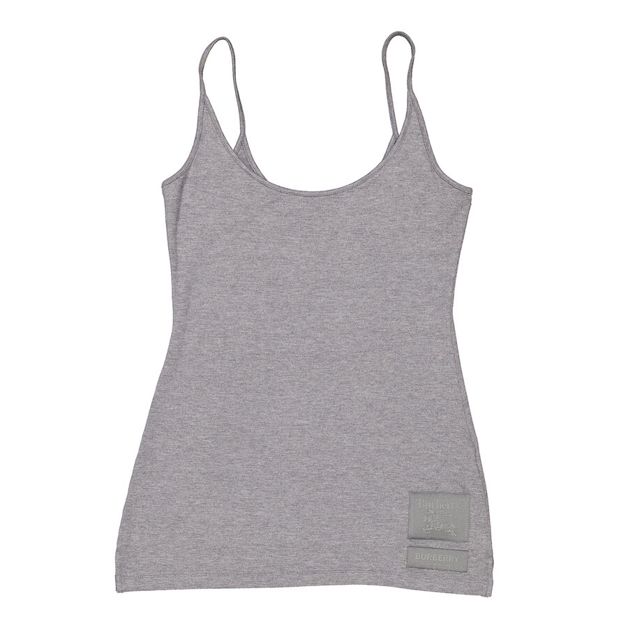 Burberry Ladies Tops. Fashion category: Tank Tops. SKU: 8072707. Burberry Equestrian Knight Thin Strap Tank Top.This tank top features the Burberry logo, an Equestrian Knight design, and a slim fit. 95% viscose, 5% elastane. GENERAL Brand Type: Designer Color: Grey Melange INFORMATION Brand: Burberry Gender: Womens Model: 8072708 DETAILS Category: Tops Apparel Type: Tank Tops Material: Viscose ADDITIONAL INFO Jomashop Sku: -8072708N Department: Clothing