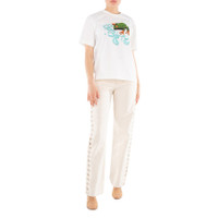 Burberry Ladies Tops. Fashion category: T-Shirts & Henleys. SKU: 8090640. Material: Cotton. Color: Salt. Burberry Graphic Printed Crewneck Cotton T-Shirt. This t-shirt features a graphic print on the front, a logo print on the rear, a round neck, short sleeves, and a straight hem. 100% Cotton. Made in Portugal. GENERAL Brand Type: Designer Color: Salt INFORMATION Brand: Burberry Gender: Womens Model: 8090640 DETAILS Category: Tops Apparel Type: T-Shirts & Henleys Material: Cotton ADDITIONAL INFO Jomashop Sku: -8090640N Department: Clothing