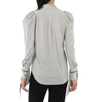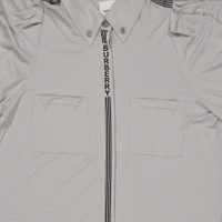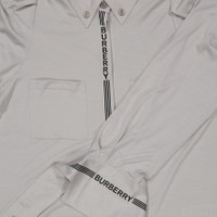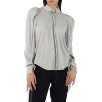 Burberry Ladies Tops. Fashion category: Shirts & Blouses. SKU: 4564410. Color: Grey Melange. Burberry Grey Melange Stripe And Logo-trimmed Wool And Silk Shirt. A wool and mulberry silk shirt from Burberry featuring a button down collar, two chest pockets, a concealed front fastening, long sleeves, draped details, a curved hemline and striped trims. Materials: 50% wool, 50% mulberry silk.Made in Italy. GENERAL Color: Grey Melange INFORMATION Brand: Burberry Gender: Womens Model: 4564410 DETAILS Category: Tops Apparel Type: Shirts & Blouses ADDITIONAL INFO Jomashop Sku: -4564410N Department: Apparel