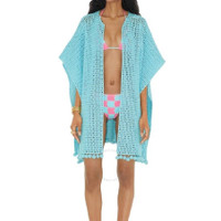 Burberry Outerwear. SKU: 8072334. Color: Bright Topaz Blue. Burberry Crochet Technical Cotton Cape. Hand-knitted for the summer collection, this lightweight cape is crafted from technical cotton in an open crochet design. Playfully finished with pompom trim, it layers effortlessly—offering a modern take on artisanal craftsmanship with a breezy, statement silhouette. Dimensions: 150 x 82 cm/59.1 x 32.3 in. 65% Cotton, 35% Polyamide. Made In Italy. GENERAL Size Info: One Size Brand Type: Designer Clothing Size: Ladies Apparel Size: OS Color: Bright Topaz Blue INFORMATION Brand: Burberry Gender: Womens Model: 8072334 DETAILS Category: Swim Apparel Type: Cover-Ups Material: Cotton, Polyamide ADDITIONAL INFO UPC Code: 5045702261736 Jomashop Sku: Z-RXQLW Department: Clothing