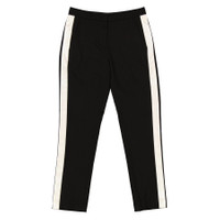 Burberry Ladies Bottoms. Fashion category: Pants & Leggings. SKU: 8017161. Color: Black. Burberry Hanover Silk Stripe Wool Straight Fit Tailored Trousers. This Italian-woven grain de poudre wool trouser features a straight fit, hook-and-bar closure, zip fly, 2 side slit pockets and highlighted with contrasting silk stripes. Materials - Outer: 100% silk, 100% wool. Lining: 93% cupro, 7% elastane. GENERAL Color: Black INFORMATION Brand: Burberry Gender: Womens Model: 8017161 DETAILS Category: Bottoms Apparel Type: Pants & Leggings ADDITIONAL INFO Jomashop Sku: -8017161N Department: Apparel