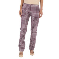 Burberry Ladies Bottoms. Fashion category: Pants & Leggings. SKU: 4072106. Color: Burgundy. Burberry Hanover Straight-fit Check Cotton Tailored Trousers. Featuring a zip fly with button and hook-and-bar closure, woven construction, 4-pocket design, skinny leg and a straight fit. Materials - 98% Cotton, 2% Polyamide. Lining: 60% Acetate, 40% Cupro. GENERAL Color: Burgundy INFORMATION Brand: Burberry Gender: Womens Model: 4072106 DETAILS Category: Bottoms Apparel Type: Pants & Leggings ADDITIONAL INFO Jomashop Sku: -4072106N Department: Apparel