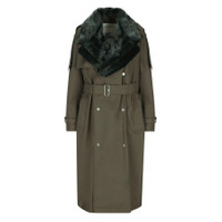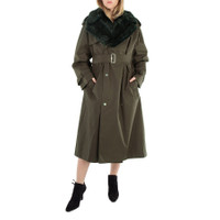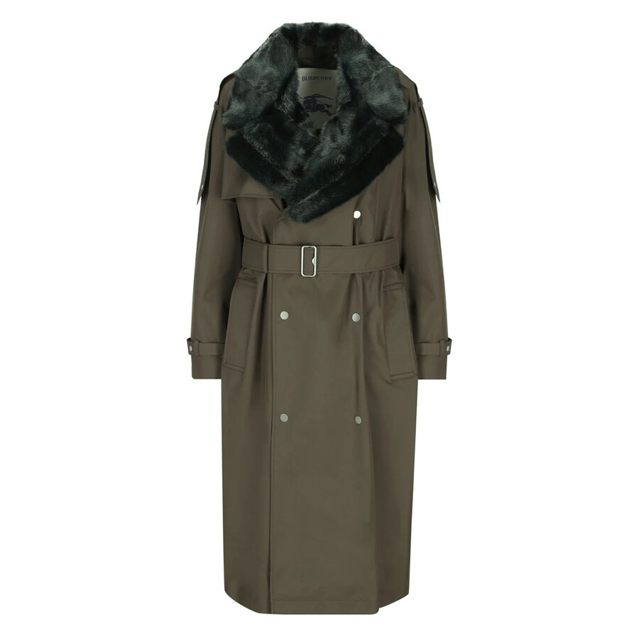 Burberry Ladies Outerwear. Fashion category: Coats & Jackets. SKU: 8077153. Color: Otter/Dark Green. Burberry High Neck Check Print Trench Coat. This bodysuit features a stretch design with a one-piece construction and a semi-sheer Chantilly lace fabric in a check print. It has a high neck, long sleeves, and a press-stud fastening. Outer: Cotton 100%, Top: Modacrylic 75%, Polyester 25%,Sleeve Lining: Viscose 74%, Cupro 26%,Lining: Cotton 100%.Made in United Kingdom. GENERAL Color: Otter INFORMATION Brand: Burberry Gender: Womens Model: 8077153 DETAILS Category: Outerwear Apparel Type: Coats & Jackets ADDITIONAL INFO Jomashop Sku: -8077153N Department: Clothing