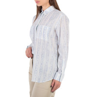 Burberry Ladies Tops. Fashion category: Shirts & Blouses. SKU: 8065095. Material: Silk. Color: White Ip Pattern. Burberry Ivanna Chain Print Silk Button-Down Collar Oversized Shirt. An oversized shirt made from Italian-woven silk crepe de chine, featuring a watercolor-effect chain print. It has a button-down collar, mother-of-pearl buttons, single-button cuffs, chest patch pockets, and a curved hem. 100% Silk. Madein Italy. GENERAL Color: White Ip Pattern INFORMATION Brand: Burberry Gender: Womens Model: 8065095 DETAILS Category: Tops Apparel Type: Shirts & Blouses Material: Silk ADDITIONAL INFO Jomashop Sku: -8065095N Department: Clothing