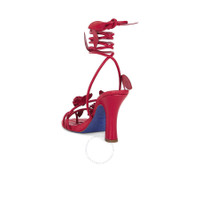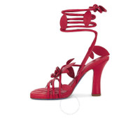 Burberry Ladies Sandals. SKU: 8085609. Color: Scarlett. Burberry Ivy Flora Heeled Wrap Sandals. The Ivy Flora Sandals are crafted from nappa lambskin leather, featuring wraparound straps inspired by rose vines with handmade buds and foliage. They have a rounded toe, quilted leather insole, and the Equestrian Knight Design at the sole. Made in Italy, they have a 10.5 cm (4.1 in) heel. Please visit the brand website for sizing information. GENERAL Brand Type: Designer INFORMATION Brand: Burberry Model: 8085609 Gender: Womens DETAILS Category: Sandals Shoe Style: Ankle Wrap Shoe Style: Ankle Wrap Color: Scarlett Upper Material: Nappa-leather Sole Material: Leather Heel Size: 95mm/ 3.75 ADDITIONAL INFO Jomashop Sku: -8085609N Department: Shoes