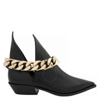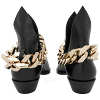 Burberry Ladies Boots. SKU: 8035937. Color: Black. Shoe Style: Ankle boots. Vamp Style: Metal Hardware. Upper Material: Leather. Lining Material: Leather. Burberry Keighley Chain Detail Leather Ankle Boots. The Keighley boots expertly crafted in Italy from smooth leather with a pointed-toe and set with oversized chain trims and a diagonal block heel. Made in Italy. Please visit the brand website for sizing information. INFORMATION Brand: Burberry Model: 8035937 Gender: Womens DETAILS Category: Boots Shoe Style: Ankle boots Shoe Style: Ankle boots Color: Black Shoe Vamp Style: Metal Hardware Upper Material: Leather Lining Material: Leather ADDITIONAL INFO Jomashop Sku: -8035937N Department: Shoes