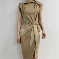 Tie Detail Tri-tone Silk Jersey Dress