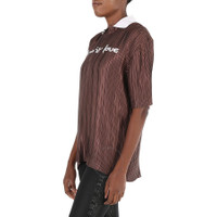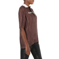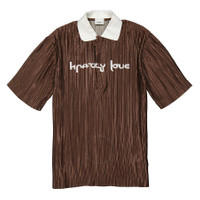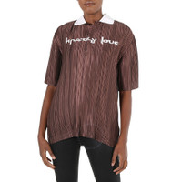 Slogan Print Satin Plissé Polo Shirt