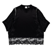 Short-sleeve Lace Panel Silk Satin Top