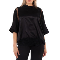 Burberry Ladies Tops. Fashion category: T-Shirts & Henleys. SKU: 8067668. Color: Black. Burberry Lace Detailed Short Sleeve T-Shirt. This T-shirt features a lace-detailed V-neck with an elasticated neckline and scallop hem, complemented by lace inserts. 100% Silk. Made in Italy. GENERAL Color: Black INFORMATION Brand: Burberry Gender: Womens Model: 8067668 DETAILS Category: Tops Apparel Type: T-Shirts & Henleys ADDITIONAL INFO Jomashop Sku: -8067668N Department: Clothing