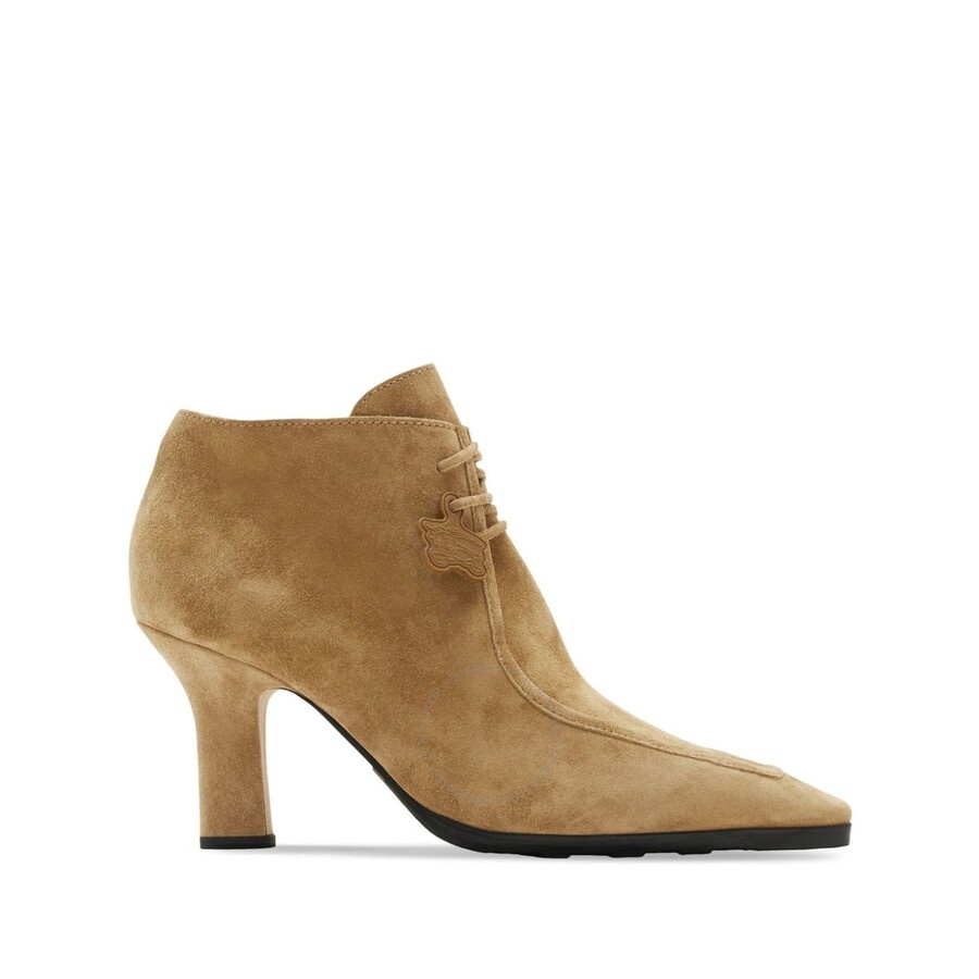 Burberry Ladies Boots. SKU: 8076201. Color: Jute. Shoe Style: Ankle. Vamp Style: Lace-up. Upper Material: Calfskin. Lining Material: Lambskin. SoleMaterial: Leather. Burberry Ladies 60mm Storm Suede Lace-Up Booties. These boots are crafted from calf suede and sheepskin, featuring a pointed toe, front lace-up fastening, and a branded leather insole. They have a 60mm mid heel and a leather sole with the logo stamped at the bottom. Outer: Calf Suede 100%; Lining: Sheepskin 94%, Goat Skin 6%; Leather 70%, Polyurethane 30%. Made in Italy.Please visit the brand website for sizing information. INFORMATION Brand: Burberry Model: 8076201 Gender: Womens DETAILS Category: Boots Shoe Style: Ankle boots Shoe Style: Ankle boots Color: Jute Shoe Vamp Style: Lace-up ADDITIONAL INFO Jomashop Sku: -8076201N Department: Shoes