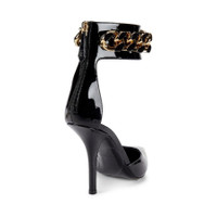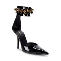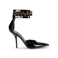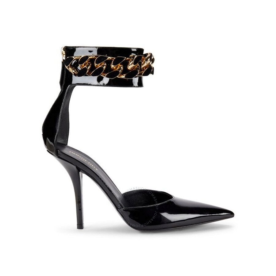 Burberry Ladies Heels. SKU: 8063577. Color: Black. Burberry Ladies Black Chain-Link Pointed High Heels. A pair of Italian tanned patent leather pumps, featuring a sleek pointed toe, chain-link ankle strap, slip-on design, branded insole, rear zip closure, and set on a 10cm stiletto heel for a chic, elevated look. Made in Italy. Please visit the brand website for sizing information. INFORMATION Brand: Burberry Model: 8063577 Gender: Womens DETAILS Category: Heels Shoe Style: Pumps Shoe Style: Pumps Color: Black Shoe Vamp Style: Slip-on Upper Material: Calfskin Sole Material: Leather Heel Size: 10cm ADDITIONAL INFO Jomashop Sku: -8063577N Department: Shoes