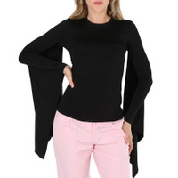 Burberry Ladies Black Crewneck Flared Sleeved Top
