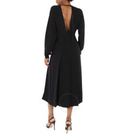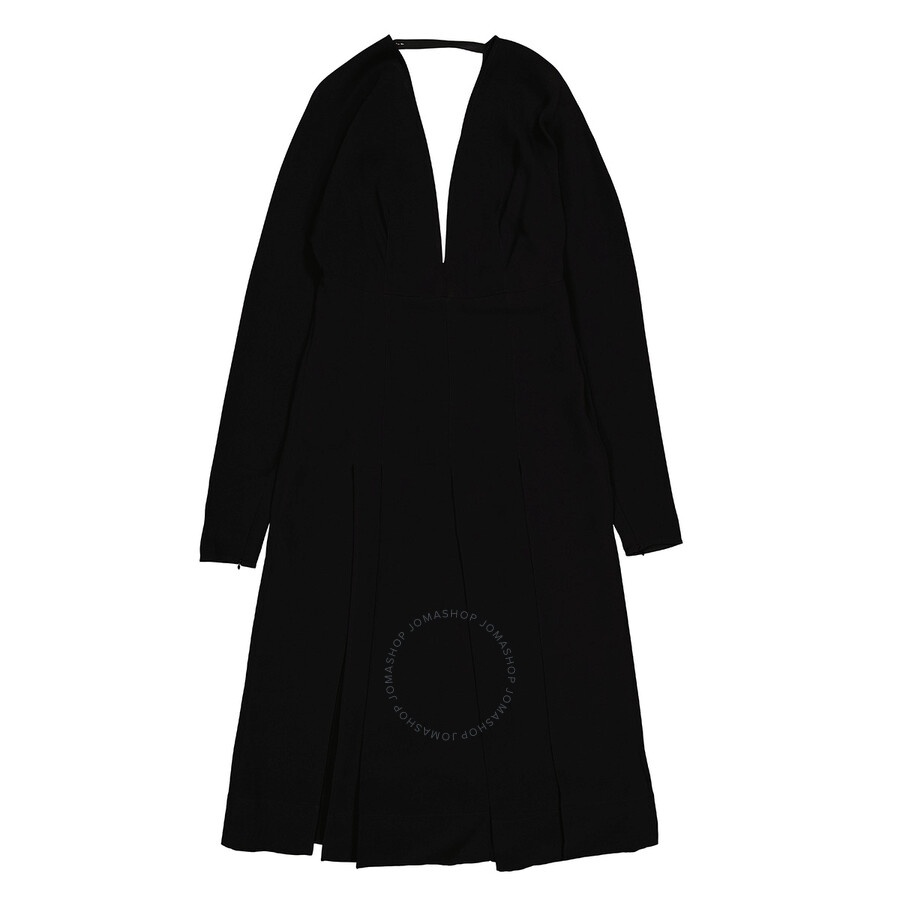 Burberry Ladies Dresses. Fashion category: Evening & Formal Gowns. SKU: 8041042. Color: Black. Burberry Ladies Black Emelia Pleated Silk Cady Midi Dress. The Emelia dress features a deep V-neckline, long sleeves, V back with strap button closure, knife pleat skirt, mini length and a straight silhouette. GENERAL Color: Black INFORMATION Brand: Burberry Gender: Womens Model: 8041042 DETAILS Category: Dresses Apparel Type: Evening & Formal Gowns ADDITIONAL INFO Jomashop Sku: -8041042N Department: Apparel