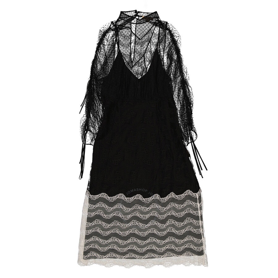 Burberry Ladies Dresses. SKU: 8001356. Color: Black. Burberry Ladies Black Geometric Lace Dress With Gathered-sleeves. Burberry gauzy lace dress in contrasting block colours with lace-adjustable gathered sleeves. Materials - Outer: 54% Polyamide, 46% Viscose. Upper garment and sleeves: 100% Polyamide. Made in Italy. GENERAL Color: Black INFORMATION Brand: Burberry Gender: Womens Model: 8001356 DETAILS Category: Dresses Apparel Type: Evening & Formal Gowns ADDITIONAL INFO Jomashop Sku: -8001356N Department: Apparel