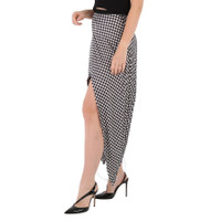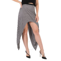 Burberry Ladies Bottoms. SKU: 4564072. Color: Black Ip Pattern.Burberry Ladies Black Gingham Check Back Tie Skirt. Crafted from stretch cotton. this black and white skirt from Burberry is decorated with a gingham checked pattern and detailed with a back tie fastening, a high waist, a short length, an asymmetric hemline and an elastic waistline. Materials: Viscose, Cotton, Spandex/Elastane. Made in Italy, GENERAL Color: Black Ip Pattern INFORMATION Brand: Burberry Gender: Womens Model: 4564072 DETAILS Category: Bottoms Apparel Type: Skirts ADDITIONAL INFO Jomashop Sku: -4564072N Department: Apparel