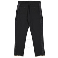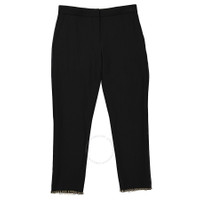 Burberry Ladies Bottoms. Fashion category: Pants & Leggings. SKU: 8017148. Color: Black. Burberry Ladies Black Hanover Ring-Pierced Wool Tailored Trousers. This straight-fit trousers in Italian-woven grain de poudre wool, highlighted with silk side stripes and runway ring piercings. It features a hook-and-bar, button and zip fly closure, side slip pockets, back button-through welt pockets. 100% Wool. GENERAL Apparel Size: Ladies Apparel Size: 6 Color: Black INFORMATION Brand: Burberry Gender: Womens Model: 8017148 Choose a Size: 6 DETAILS Category: Bottoms Apparel Type: Pants & Leggings Material: Wool ADDITIONAL INFO UPC Code: 5045558771472 Jomashop Sku: Z-TBC6W Department: Apparel