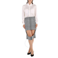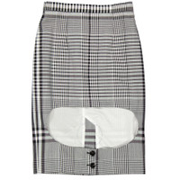 Burberry Ladies Bottoms. SKU: 4564360. Color: Black Ip Pattern. Burberry Ladies Black Ip Pattern Bottoms. This check technical step-through skirt from Burberry features a back zip fastening, check print, high waist, front cut-out detail, a straight fit and a short length. Materials: Lining: Cupro, Outer: Buffalo Horn, Polyester and Wool. Made in Italy. GENERAL Color: Black Ip Pattern INFORMATION Brand: Burberry Gender: Womens Model: 4564360 DETAILS Category: Bottoms Apparel Type: Skirts ADDITIONAL INFO Jomashop Sku: -4564360N Department: Apparel