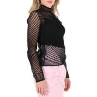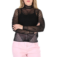 Burberry Ladies Tops. Fashion category: Cardigans & Sweaters. SKU: 4568011. Color: Black. Burberry slim-fit turtleneck with a sherer net pattern. Turtleneck. Long sleeves. Pullover style. Material: 77% Cotton, 23% Polyester. Made in Italy. GENERAL Color: Black INFORMATION Brand: Burberry Gender: Womens Model: 4568011 DETAILS Category: Tops Apparel Type: Cardigans & Sweaters Material: Cotton, Polyester ADDITIONAL INFO Jomashop Sku: -4568011N Department: Apparel