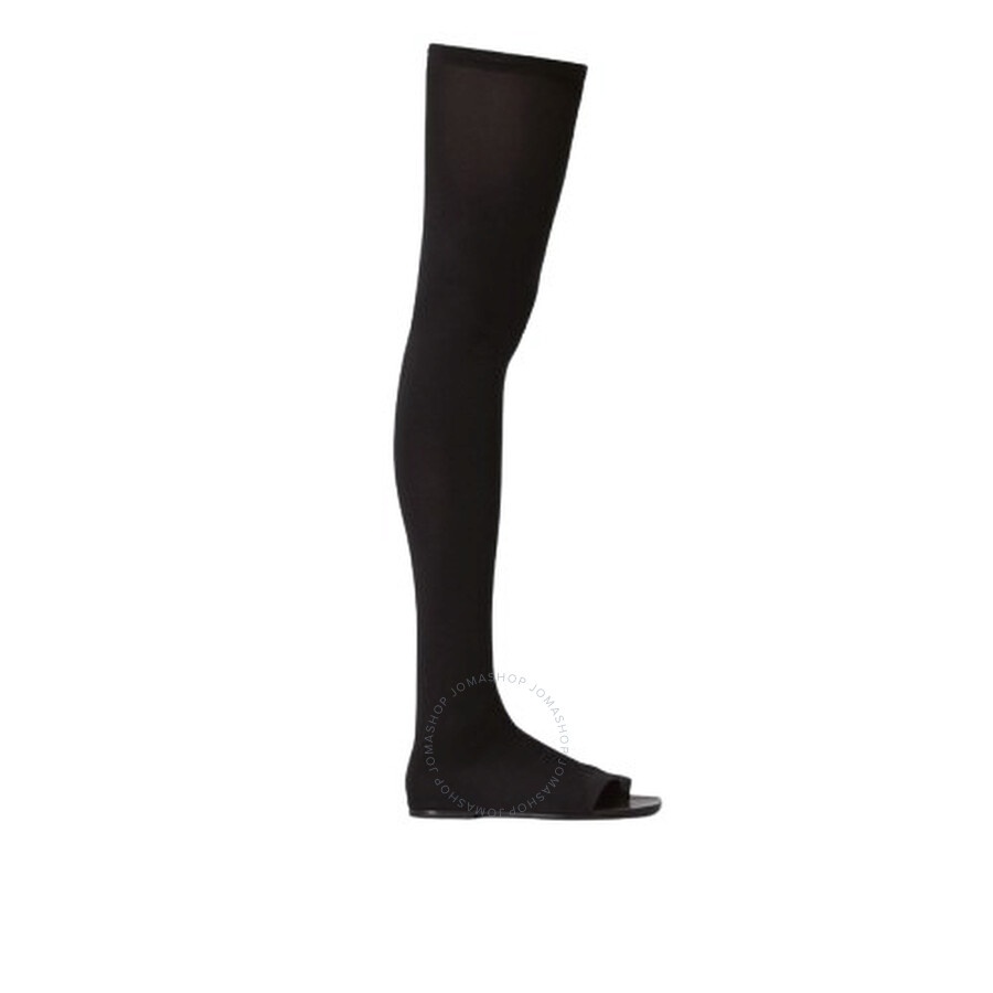 Burberry Ladies Boots. SKU: 8053132. Color: Black. Burberry Ladies Black Marleyton Toe-Ring Detail Over-The-Knee Sock Boots. This form-fitting over-the-knee sock boots features an open toe, pull-on style, a toe ring detail and as the name suggests it fits over the knee. Made in Italy. Please visit the brand website for sizing information. INFORMATION Brand: Burberry Model: 8053132 Gender: Womens DETAILS Category: Boots Shoe Style: Knee-High Boots Shoe Style: Knee-High Boots Color: Black Shoe Vamp Style: Slip-on Sole Material: Leather ADDITIONAL INFO Jomashop Sku: -8053132N Department: Shoes