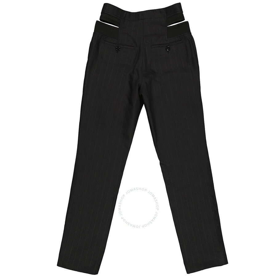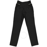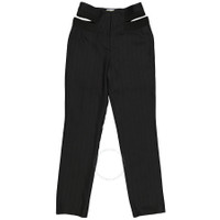 Burberry Ladies Bottoms. Fashion category: Pants & Leggings. SKU: 4564306. Color: Black. Burberry Ladies Black Pinstripe Functional Twill Remodeled Trousers. A functional twill with pinstripes trousers feature a high-waist, cut-out detail knit panels, hook and zipper fastening, and buttoned welt pockets on the rear. Made in Italy. GENERAL Color: Black INFORMATION Brand: Burberry Gender: Womens Model: 4564306 DETAILS Category: Bottoms Apparel Type: Pants & Leggings ADDITIONAL INFO Jomashop Sku: -4564306N Department: Apparel