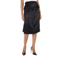Burberry Ladies Black Silk Satin Foldover Skirt