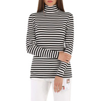 Burberry Ladies Black Striped Stretch Jersey Turtleneck Top