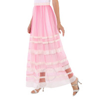 Burberry Ladies Bright Pink Floral Lace-trim Tulle Maxi Skirt