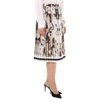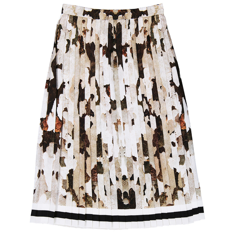 Burberry Ladies Camouflage Print And Stripes Pleated Skirt