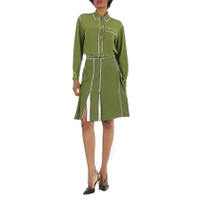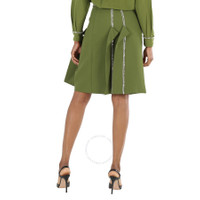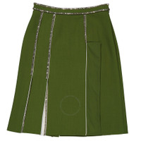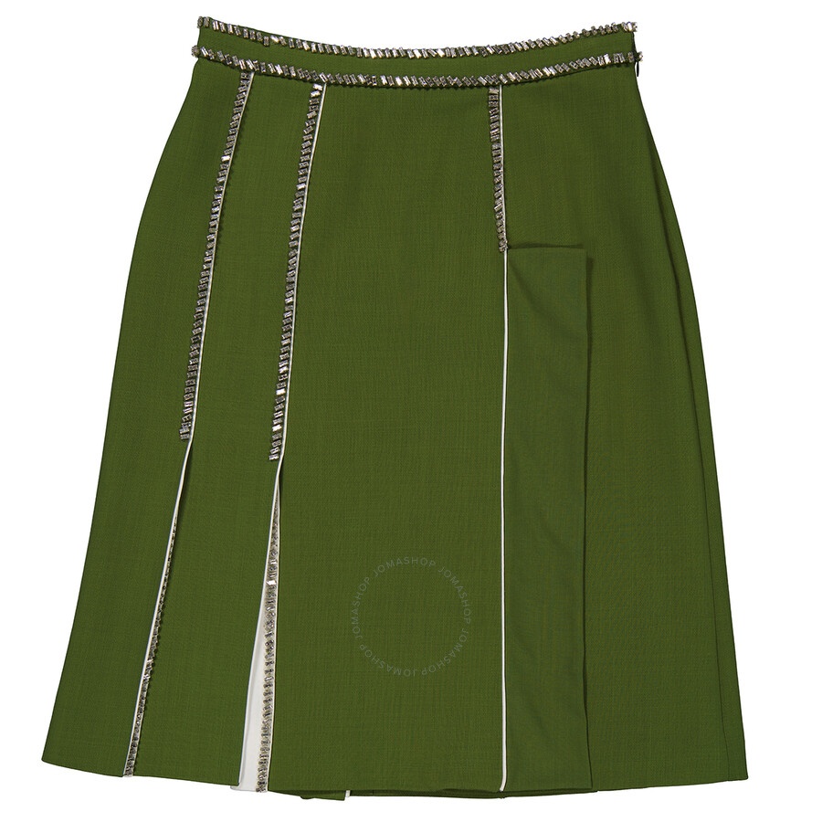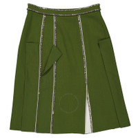 Burberry Ladies Cedar Green Crystal Detail Panelled Wool-Crepe A-Line Skirt