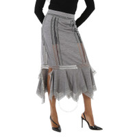 Burberry Ladies Cloud Grey Chantilly Lace And Wool Jersey Skirt